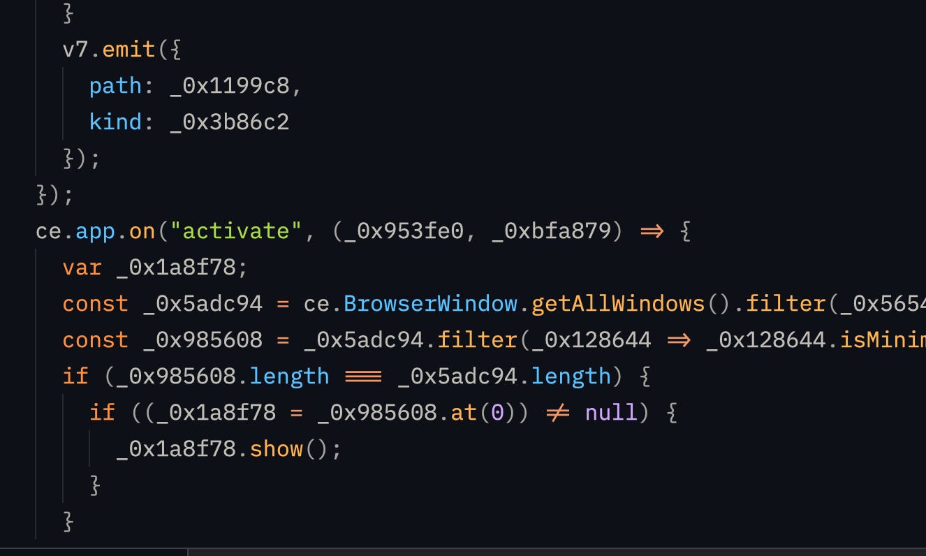 asar CLI : its basically a packaging program for electron apps which can be also be used for unpacking apps